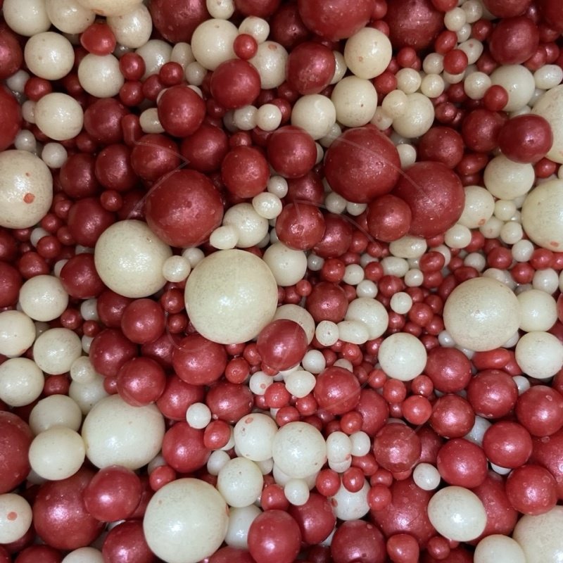 Посыпка кондитерская из дутого риса жемчуг "Красный и серебро" 50 г