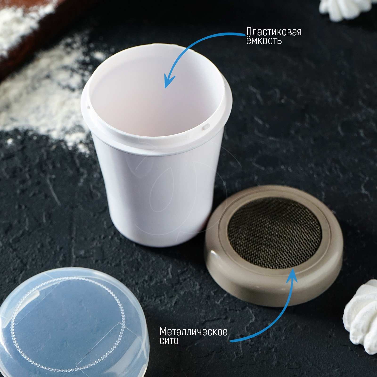 • наличие сита, облегчающего дозировку;