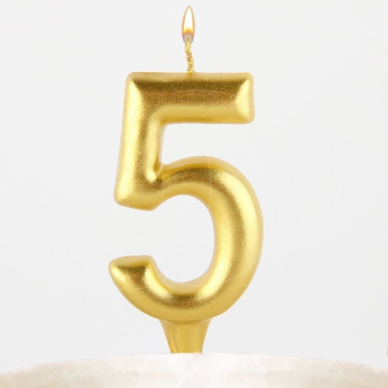 Доставка Свеча декоративная Цифра "5" Золотая пухлая из магазина в вашем городе: