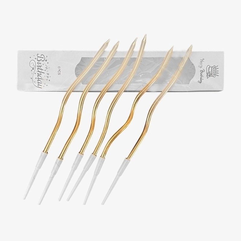 Свечи декоративные "Бело-золотая волна" 6 шт