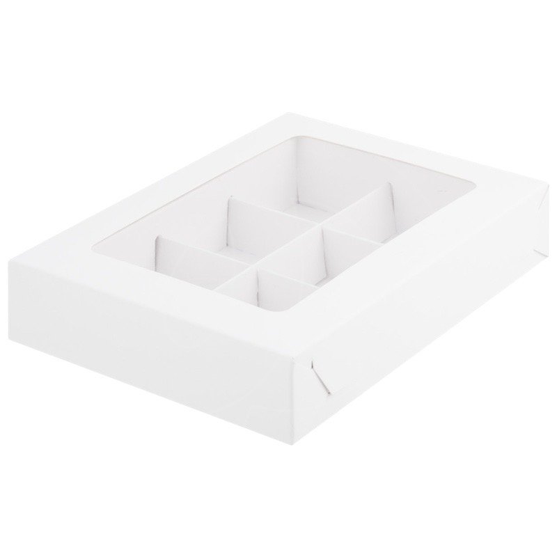 Доставка Коробка на 6 конфет с окном белая 15,5х11,5х3 см из магазина в вашем городе: