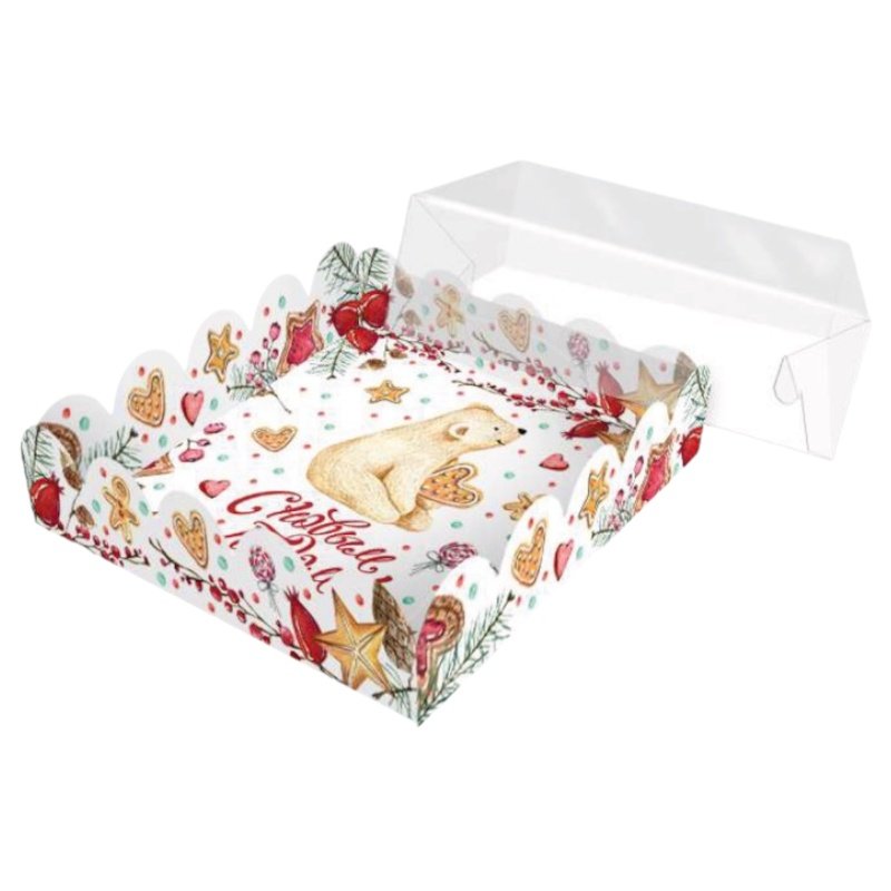 Коробка для сладостей с прозрачной крышкой "Мишка" 15х15х3 см