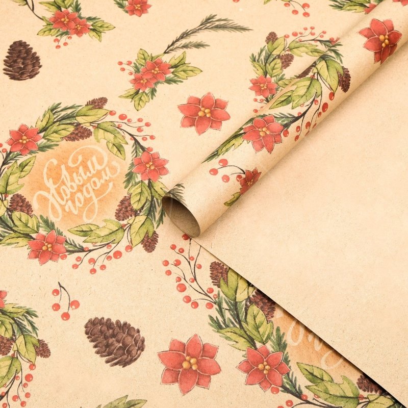 Доставка Бумага упаковочная "Новогодний венок" 70х100 см из магазина в вашем городе: